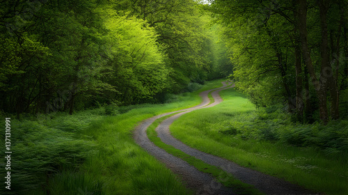 Fototapeta premium Winding Forest Path Through Lush Green Trees