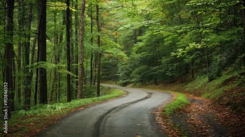 © pintu, Naklejka premium Winding Forest Road
