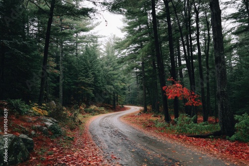 © Mike, Fototapeta premium Winding forest road in autumn