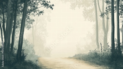 © Anat art, Obraz premium Winding forest trail through tall trees in a serene misty morning. Generative AI