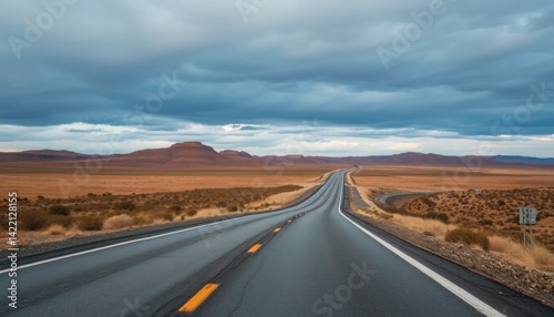 © awan toklo, Naklejka premium Winding Highway Through Desert Landscape
