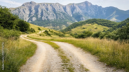 Naklejka premium Winding mountain road, scenic view, summer travel