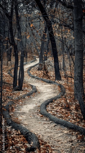 © Iswanto, Fototapeta premium Winding Path Through a Burnt Forest.