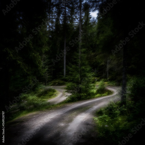 © Jumali, Fototapeta premium Winding path through a dense forest.