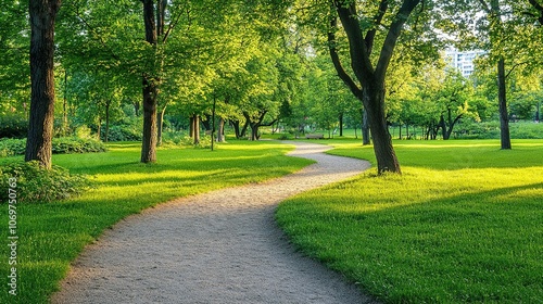 © diracreativa, Fototapeta premium Winding Path Through a Green Forest Park