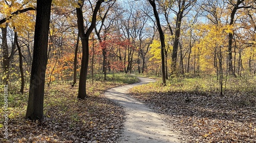 Fototapeta premium Winding path through autumn forest with colorful leaves.