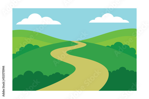 Fototapeta premium Winding Path Through Green Meadows Landscape Illustration