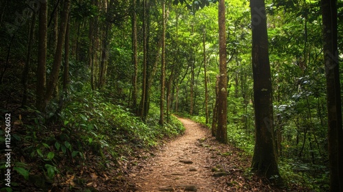 © Ira, Obraz premium Winding path through lush green rainforest.
