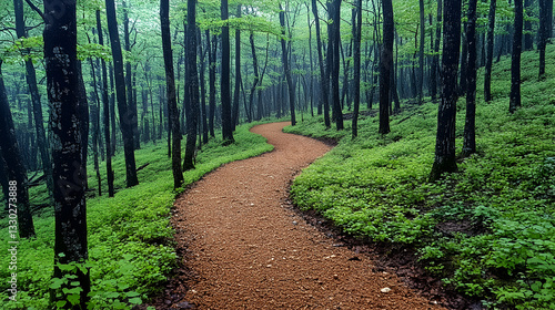 Fototapeta premium Winding path through misty forest