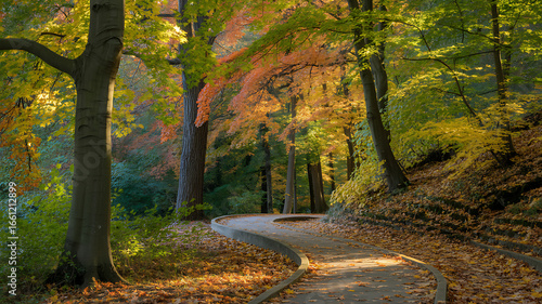 © Muhammad, Naklejka premium Winding Pathway Through a Vibrant Autumn Forest