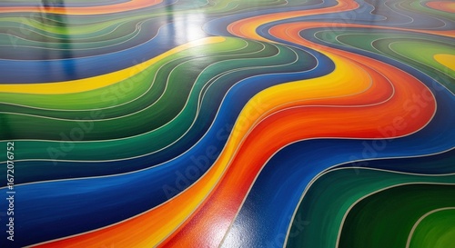 Obraz premium Winding River of Color: Abstract Floor Art with Reflective Surfa