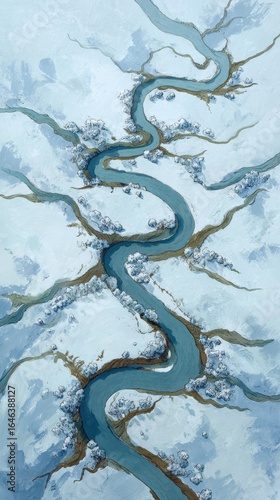 © Pixel Town, Obraz premium Winding River Through Snowy Landscape