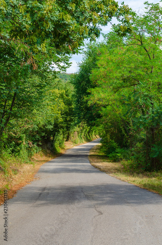 © Ditlevsen, Fototapeta premium Winding road below green trees on either side