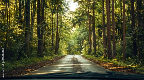 © twilight mist, Obraz premium Winding Road Through a Dense Forest