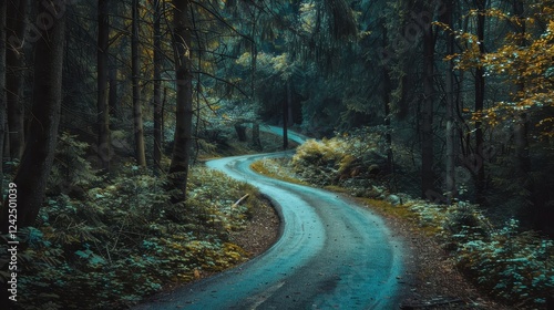 Fototapeta premium Winding Road Through a Dense Forest Inviting Adventure and Exploration