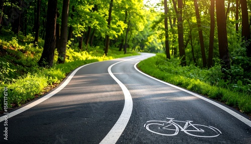 © Raka, Obraz premium Winding road through a lush forest (1)