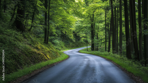 © anis, Fototapeta premium Winding Road Through a Lush Forest
