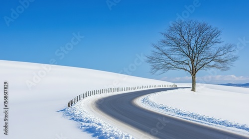 © Jennifer, Fototapeta premium Winding road through a snowy landscape.