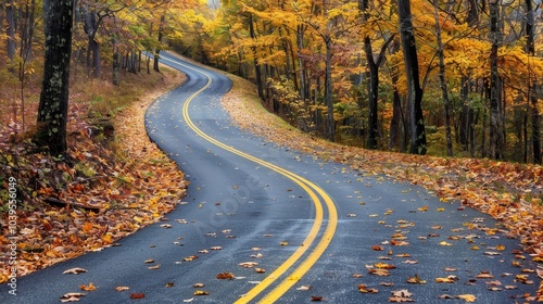 © AssanAI.Studio, Fototapeta premium Winding Road Through Dense Autumn Forest