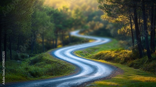 Obraz premium Winding road through forest