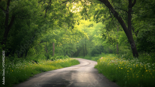 © Graphics, Naklejka premium Winding Road Through Green Forest