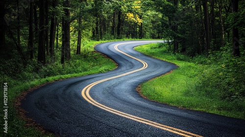 © B8stock, Fototapeta premium Winding Road Through Lush Green Forest