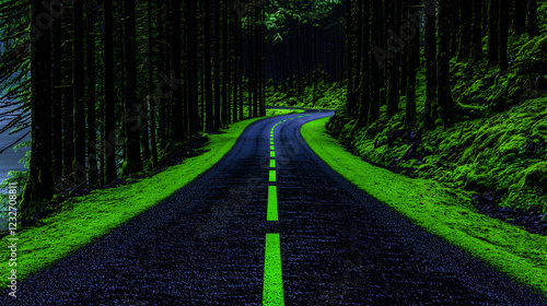 © BROPRADANA, Obraz premium Winding road through lush green forest