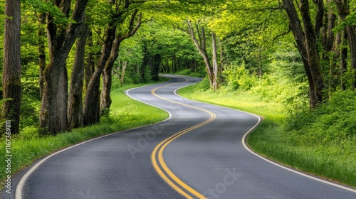 Fototapeta premium Winding Road Through Lush Green Forest Canopy