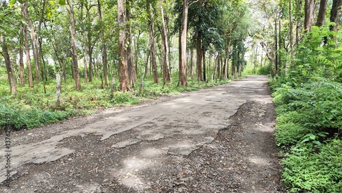 Fototapeta premium Winding Road Through Lush Green Forest with Natural Light - Tranquil Nature Scene