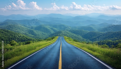 © Al, Fototapeta premium Winding road through lush mountains (1)