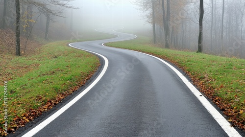 © wiwat apisithpinyo, Fototapeta premium Winding Road Through Misty Autumn Forest