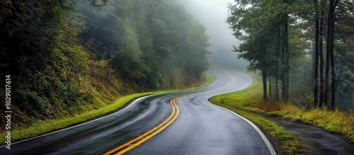 Fototapeta premium Winding Road Through Misty Forest