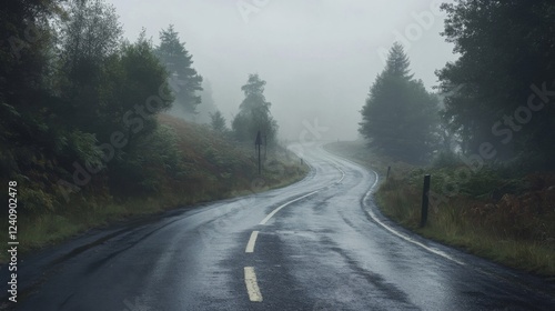 © Sleeping Carbuncle, Naklejka premium Winding Road Through Misty Forest