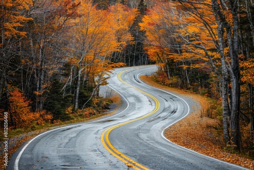Obraz premium Winding Road Through Vibrant Autumn Forest