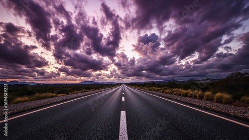 © kongla, Fototapeta premium Winding Road Under a Purple Cloudy Sky