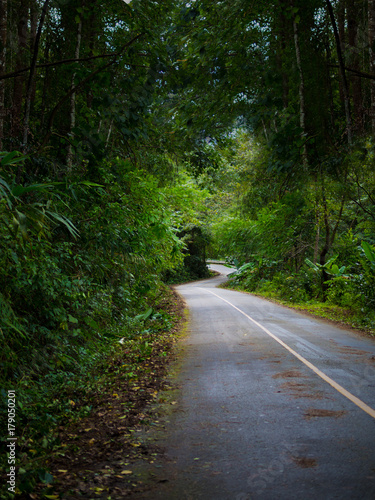 © kaipong, Fototapeta premium Winding road with nature tree tunnel
