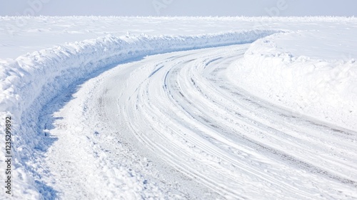 © Giman, Obraz premium Winding snow-covered road, arctic landscape, winter travel