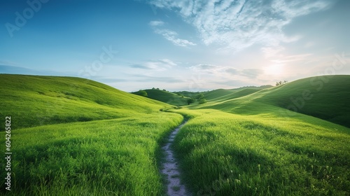 Obraz premium Winding trail on green lush fields