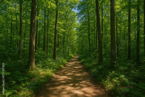 Obraz premium Winding trail through lush woodland trees
