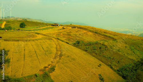 © Nathut, Fototapeta premium windmills in field on the mountains