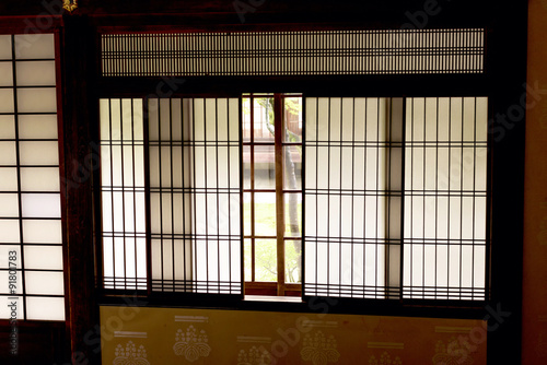 Fototapeta premium Window in Japan made of paper with garden