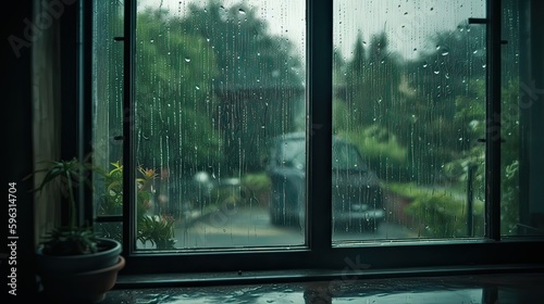 © TeteraX, Naklejka premium window in the rain. generative ai