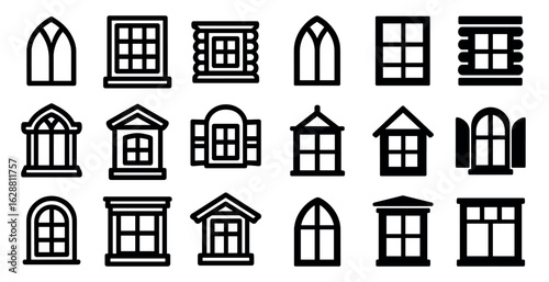 Fototapeta premium Window outline icons set – windows, architectural, building design elements