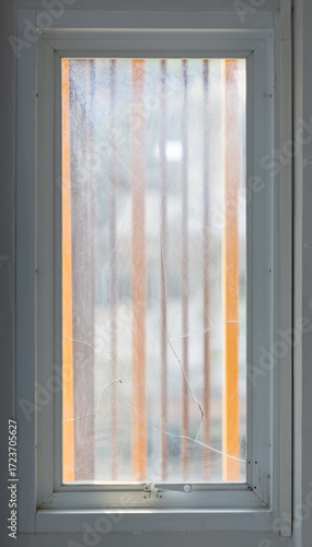 © Wasan, Fototapeta premium Window pane with broken and cracked glass.