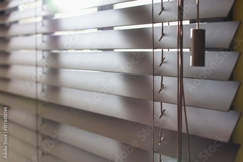 © New Africa, Fototapeta premium Window with closed blinds indoors, closeup view