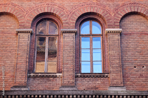 © watcherfox, Fototapeta premium Windows in a red brick wall
