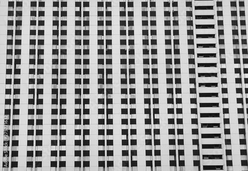 Fototapeta premium Windows on house facade black and white image. Simple widows pattern on multi...