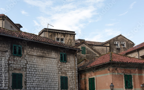 © Lapidus, Fototapeta premium Windows, roofs, sky. Old Kotor, Montenego