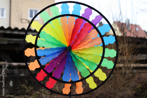 Obraz premium Windrad, bunt, Garten, Farben, Regenbogen