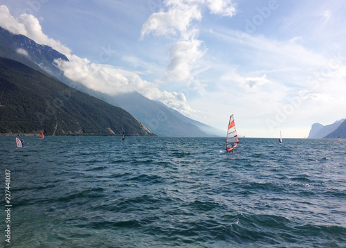 Fototapeta premium Windsurfing on lake Garda in Italy